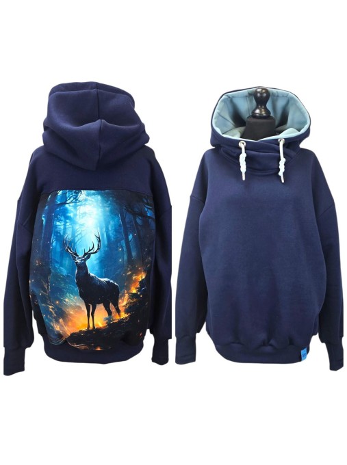 Wyjątkowa Bluza Kameleon z Welurowym Panelem - Jeleń w lesie